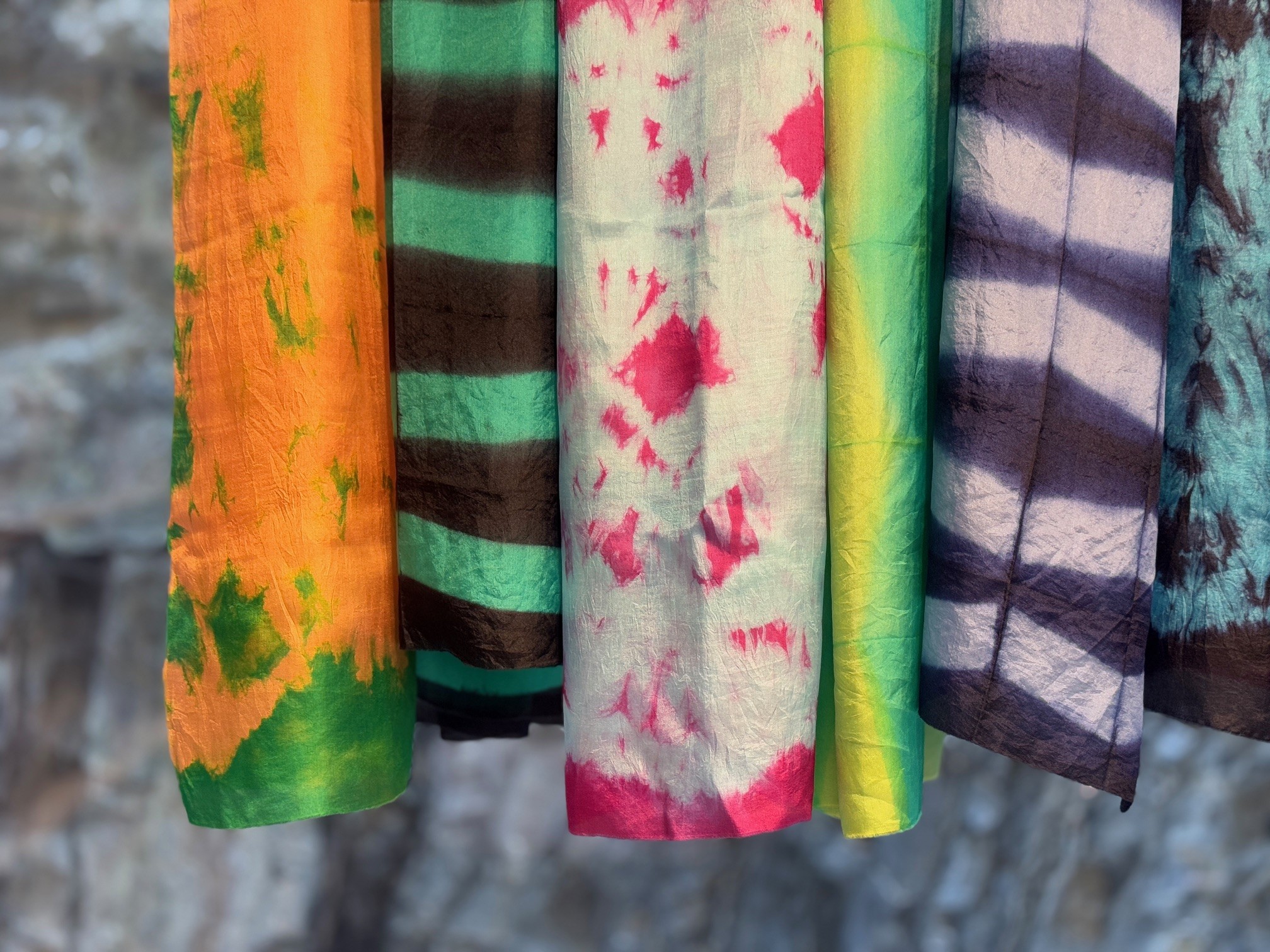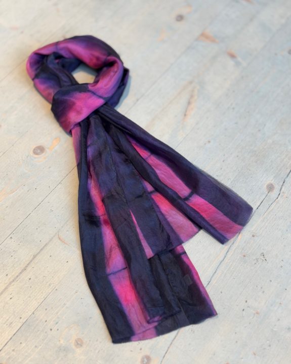 Aase Marie Brun (f. 1950) er en tekstilkunstner som i hovedsak arbeider med shiboriteknikken, den japanske betegnelsen på innfarging med ulike reserveringsteknikker, som hun bruker til både ull og silke. Flere av hennes arbeider består av små elementer, med utgangspunkt i en geometrisk eller en organisk form, og med mange kombinasjonsmuligheter. Stoffbitene skjæres ut, farges i flere omganger, og sys sammen for hånd. Vi selger hennes silkeskjerf, utført i shiboriteknikken.