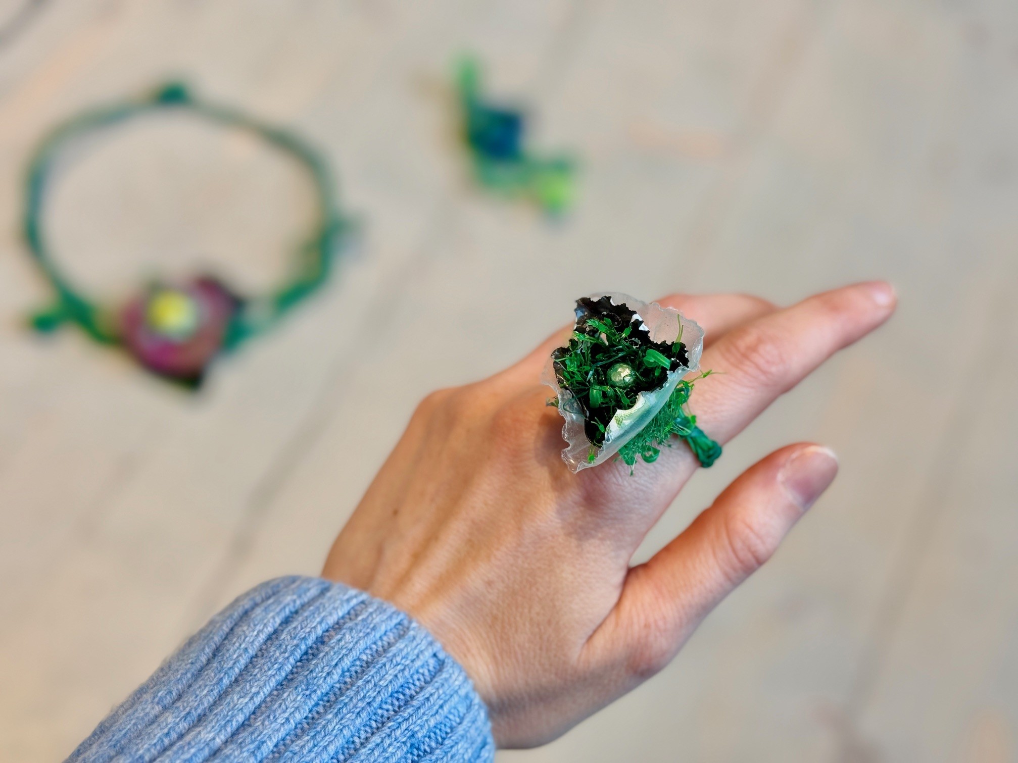 Bodil Lundsten Buchacz (f. 1947), fra Ringsaker, har, etter et kunstnerskap bestående av mange ulike teknikker og materialer, de siste årene konsentrert arbeidet sitt rundt små objekter laget av plastavfall. Hun er opptatt av hvordan vårt forbruk påvirker miljøet, og tar for seg plastmaterialer vi daglig har i hendene, og omformer disse. Gjennom unaturlige planteformer hinter hun om hva som kan skje dersom vi ikke passer på kloden vår. I kunstbutikken får du kjøpt flere av hennes smykker.