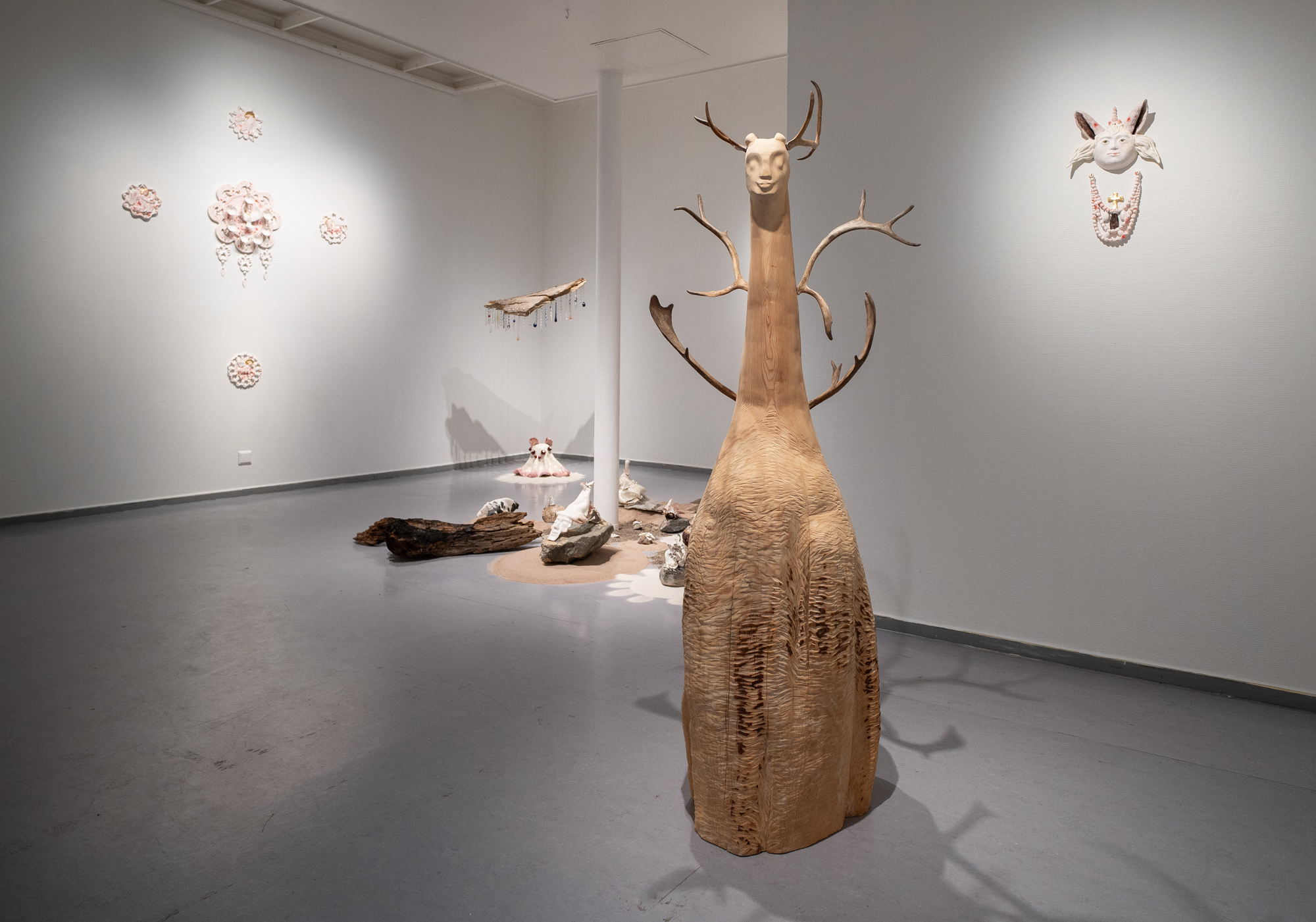 Laakso is deeply engaged with nature mysticism and mythologies, and perceives the installation and its individual works also as a psychological and spiritual landscape. She is affected by the times we live in; the tensions we now experience have shown us that democratic and solidaric values cannot be taken for granted, and that these values — along with nature — need our protection.